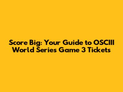 Score Big: Your Guide To OSCIII World Series Game 3 Tickets